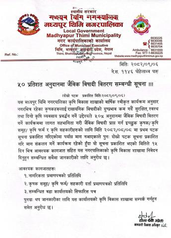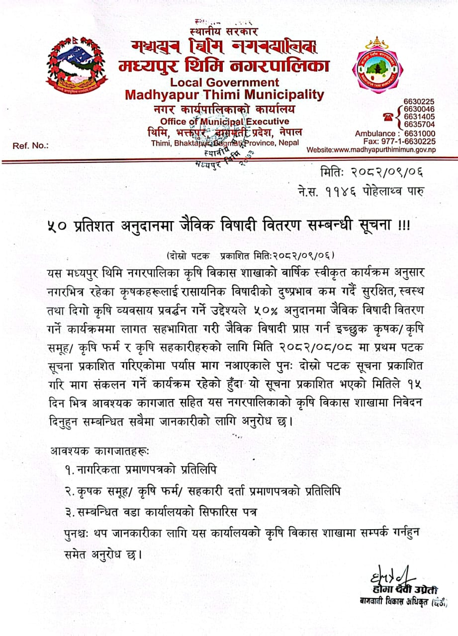 Notice regarding distribution of organic pesticides at 50 percent subsidy!!! (Second publication date 2082.09.06)