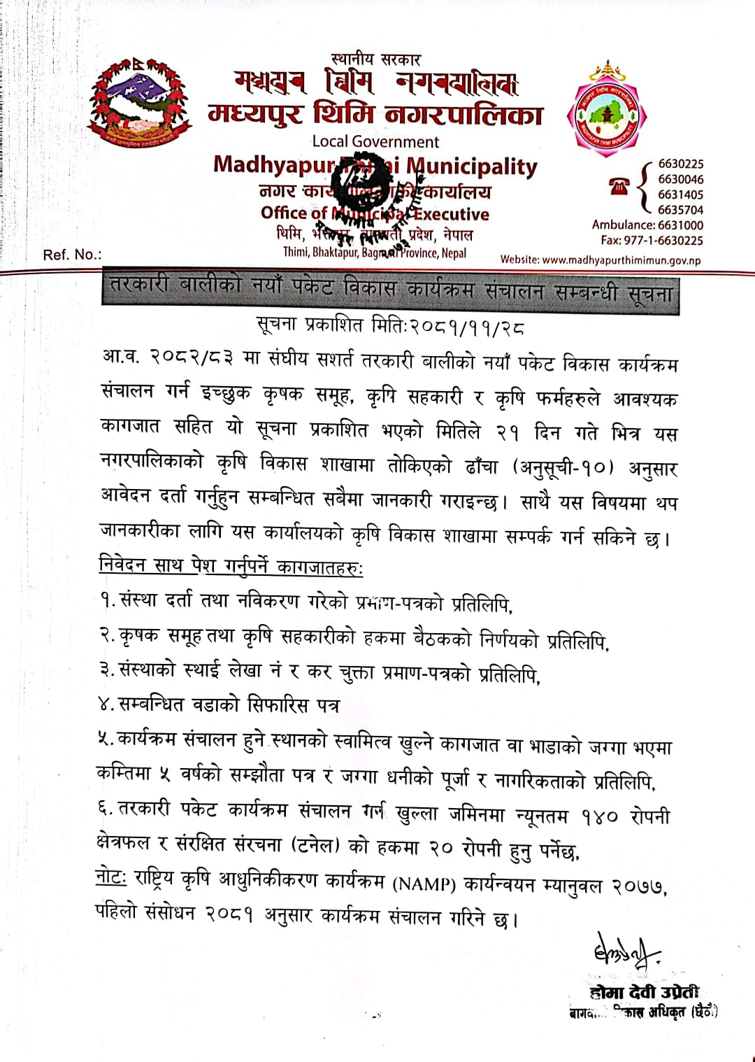 Notice regarding the operation of the new pocket development program for agricultural and vegetable growers