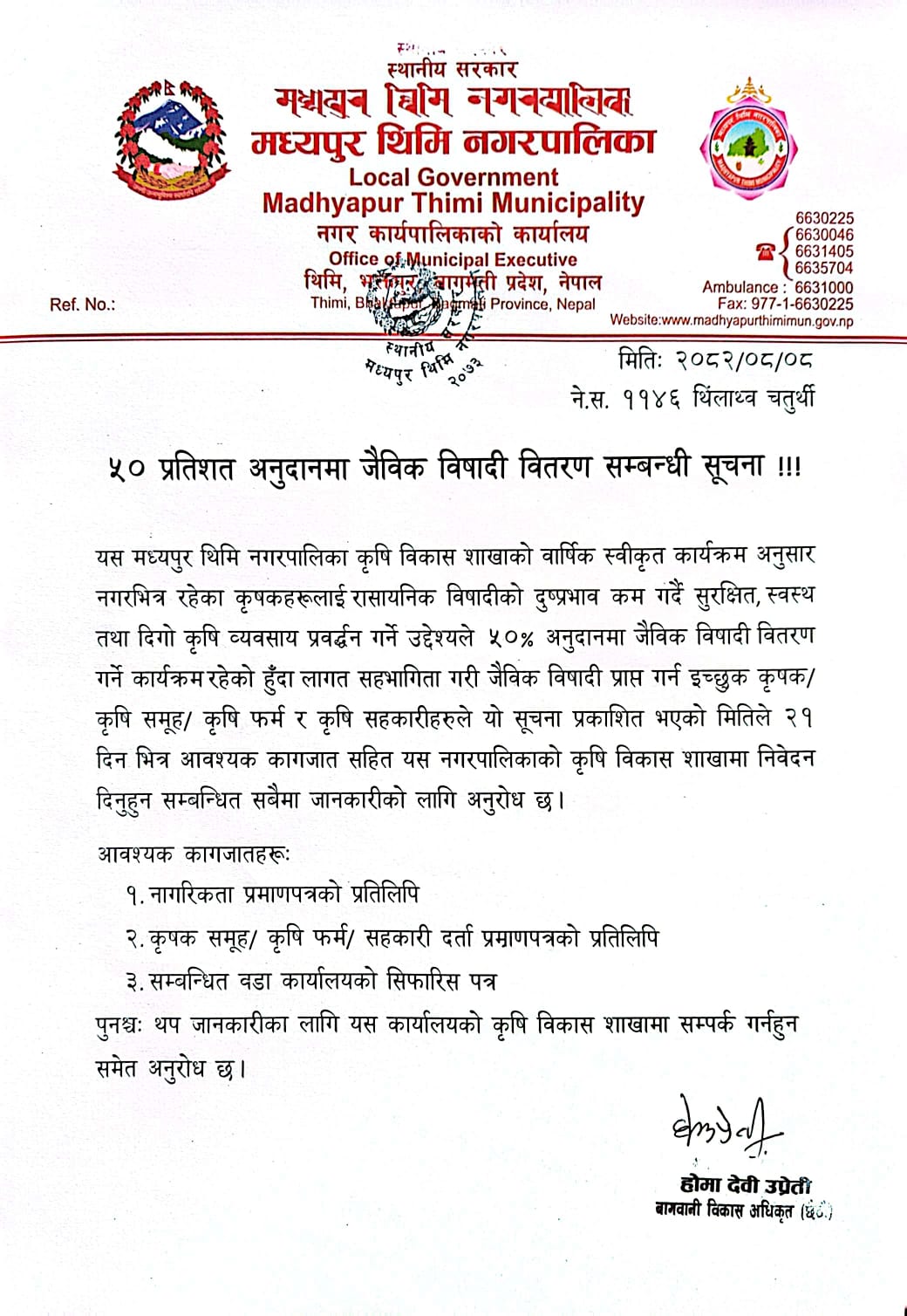 Information regarding the distribution of organic pesticides at a 50 percent subsidy!!!