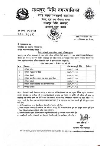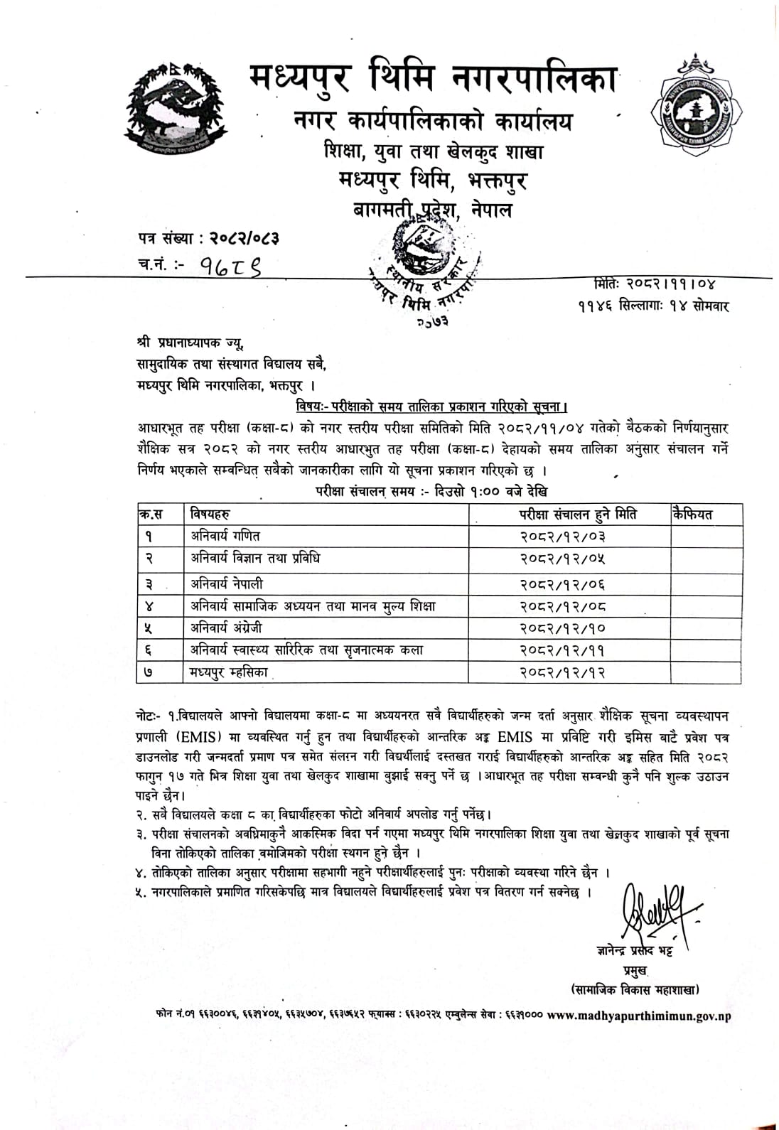 परीक्षाको समय तालिका प्रकाशन गरिएको सूचना ।
