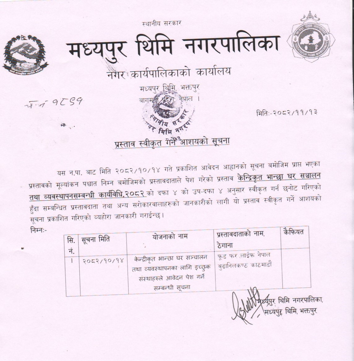 मकै तथा कौशी खेती प्रवर्द्धन कार्यक्रम, मध्यपुर थिमि न.पा.-२ सम्बन्धी सूचना
