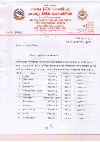 मेलमिलाप कर्ताको सूचि प्रकाशन सम्बन्धमा