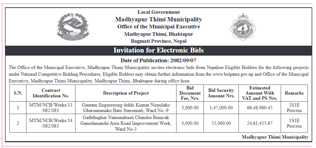 सार्वजनिक खरीद / बोलपत्र सूचना